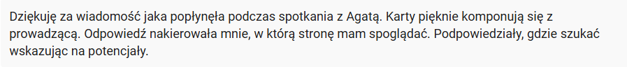 Po drugie – mam na swoim koncie ponad 100 wykonanych odczytów i pełnych portretów numerologicznych. To setki godzin analizowania ludzkich dróg i ich energetycznych potencjałów. I przekładania ich na konkretne wskazówki, jak te często metaforyczne podpowiedzi zastosować w zwyczajnym życiu.